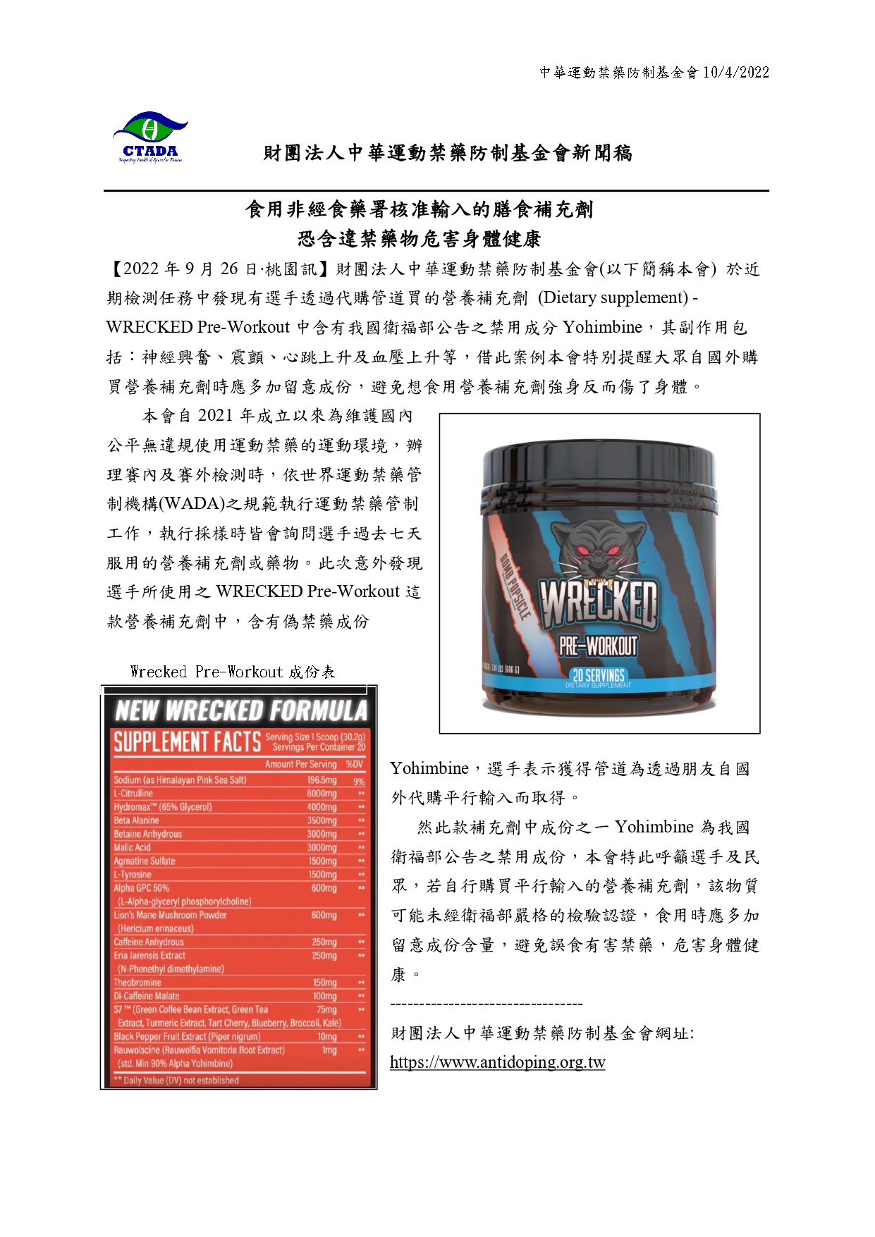 〈食用非經食藥署核准輸入的膳食補充劑,恐含違禁藥物危害身體健康〉
